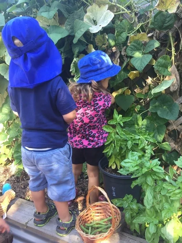 Planting and caring for herbs and vegetables in our garden.